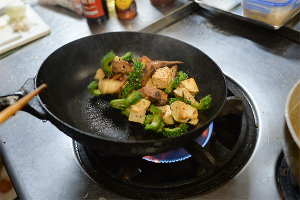 豚肉、野菜を炒め、最後に卵を戻して軽く和えるそうです。