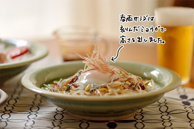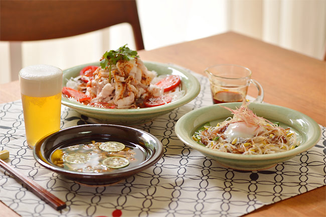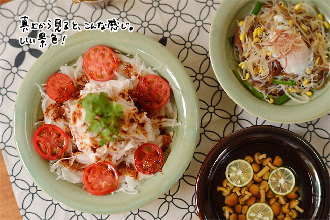 「中のカレー皿」に盛ったそうめんと薬味を、