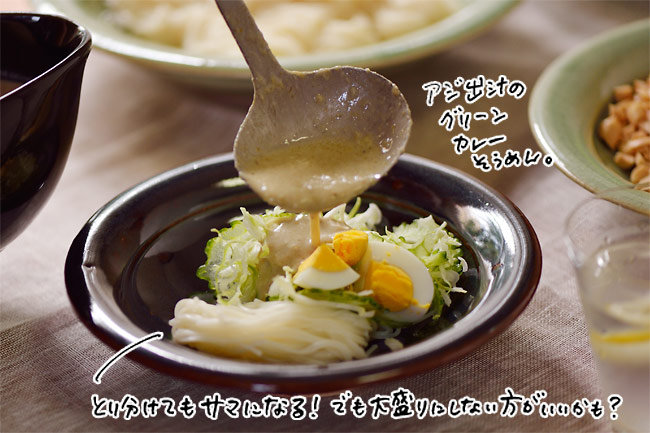 グリーンカレーペーストで仕上げたスパイシーなつゆ。