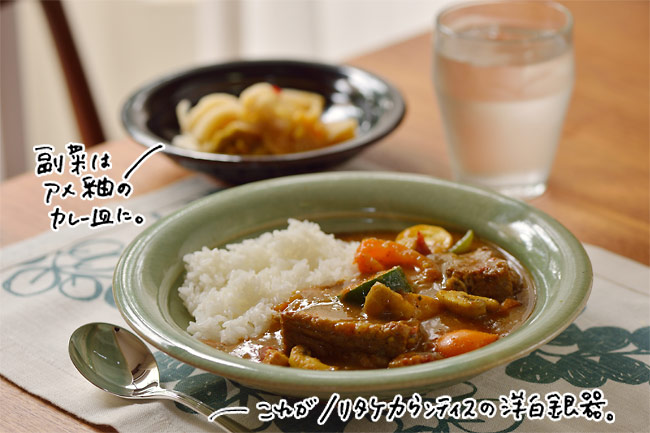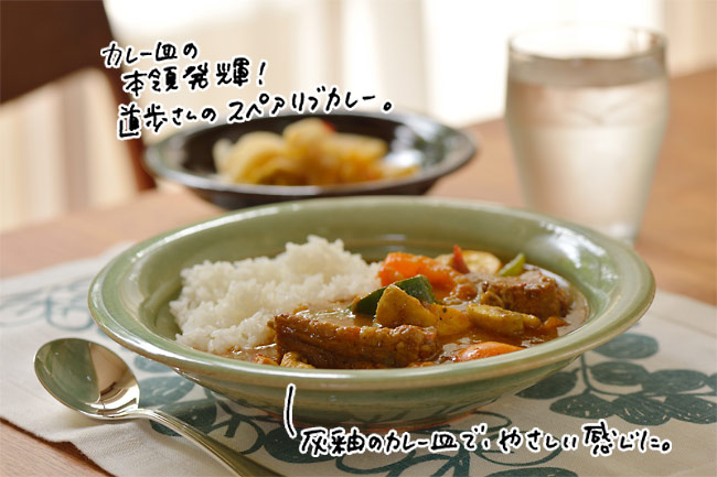 ほかのうつわとの組み合わせもたのしいカレー皿。