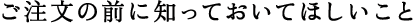 ご注文の前にご理解いただきたいことや、