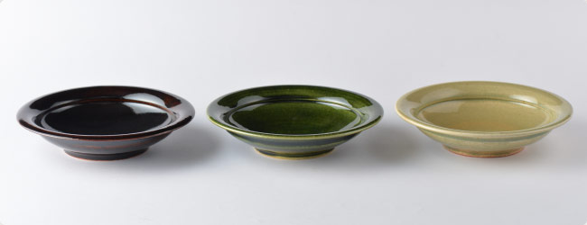 土楽の職人さんが一枚ずつ、手作業で釉薬をかけ、
