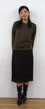 秋冬のデートにもってこいだ! カーキのロンTに黒のスカートって、 こんな感じなんだ〜。 合いますねぇ〜。これはかなりオススメでしょ! (ゆーな)