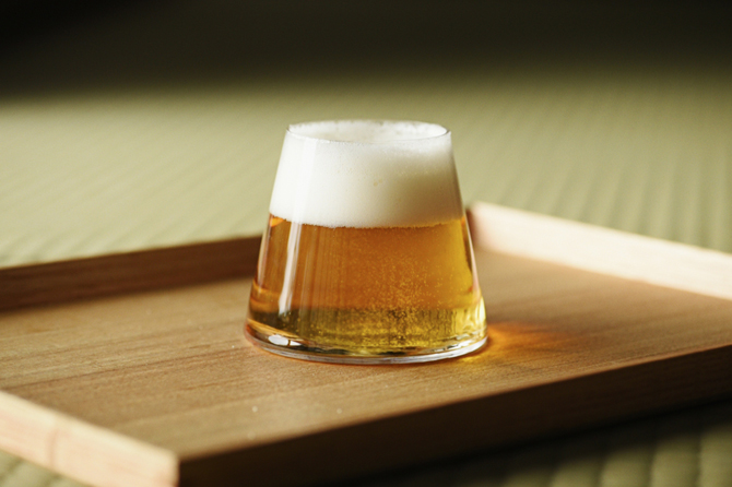 ビールを、富士山のかたちのグラスに注げば‥‥。