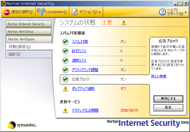 Norton Internet Securityの広告ブロック機能をオフにする方法
