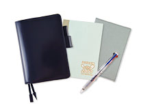 「牛革ガラス加工・ブルーブラック」のカバーと手帳本体。