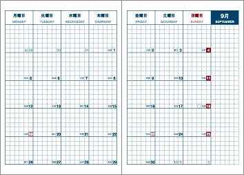 2005年版も、月間カレンダーは 「月曜日はじまり」です。 先日のアンケートでも、 ずばり、「月曜日はじまり」と「日曜日はじまり」、 どちらがご希望か、みなさまにお伺いしました。 その結果、数字で言いますと、7:3の割合で、 「月曜日はじまり」をご希望する人の方が多かったんです。 おそらく、2003年版、2004年版と2年連続で 「月曜日はじまり」の月間カレンダーでしたので、 もはやすっかり使い慣れている 「月曜日はじまり」の仕様を変えないで欲しい、 ということが、一番大きな理由になっていると思います。 一方で、「日曜日はじまり」をご希望の方からは、 「日曜はじまりのカレンダーに、 日ごろから目が慣れているので、 つい間違えて、月曜日の欄に 日曜日の予定を書いてしまうんです‥‥」 といったご意見をいただいております。 先程もお伝えしましたが、2005年版より、 月間カレンダーも2色使いになって、 日曜日や祝日は、赤系の色で表記されておりますので、 ぱっとひと目で日曜日の位置がわかって、 記入間違いも、事前に防げると思います! ということもありまして、 2005年版の月間カレンダーも、 「月曜日はじまり」に決定しました。 ![]() 月間カレンダー |
