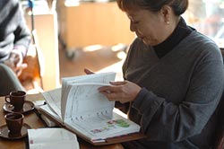 ご存知、ひでこさんの『ごはん日記』は、 かれこれ、連載期間が5年ちかくにもおよぶそうです。 「そんな毎日、いいもんばっかり食べてないですよ。 おせんべい2枚ですませるときもあるし・・・・ そういうときも、ありのまま載せてます。」 とおっしゃるひでこさん。 ちなみに、この日の朝食は、 とおるさん手作りの豆乳をつかって、 “豆乳なべ”を食べたそうです。 ご夫婦で、交代で味付けをしたりして、 とっても仲良しなお二人の手帳談義は、さらにつづきます。