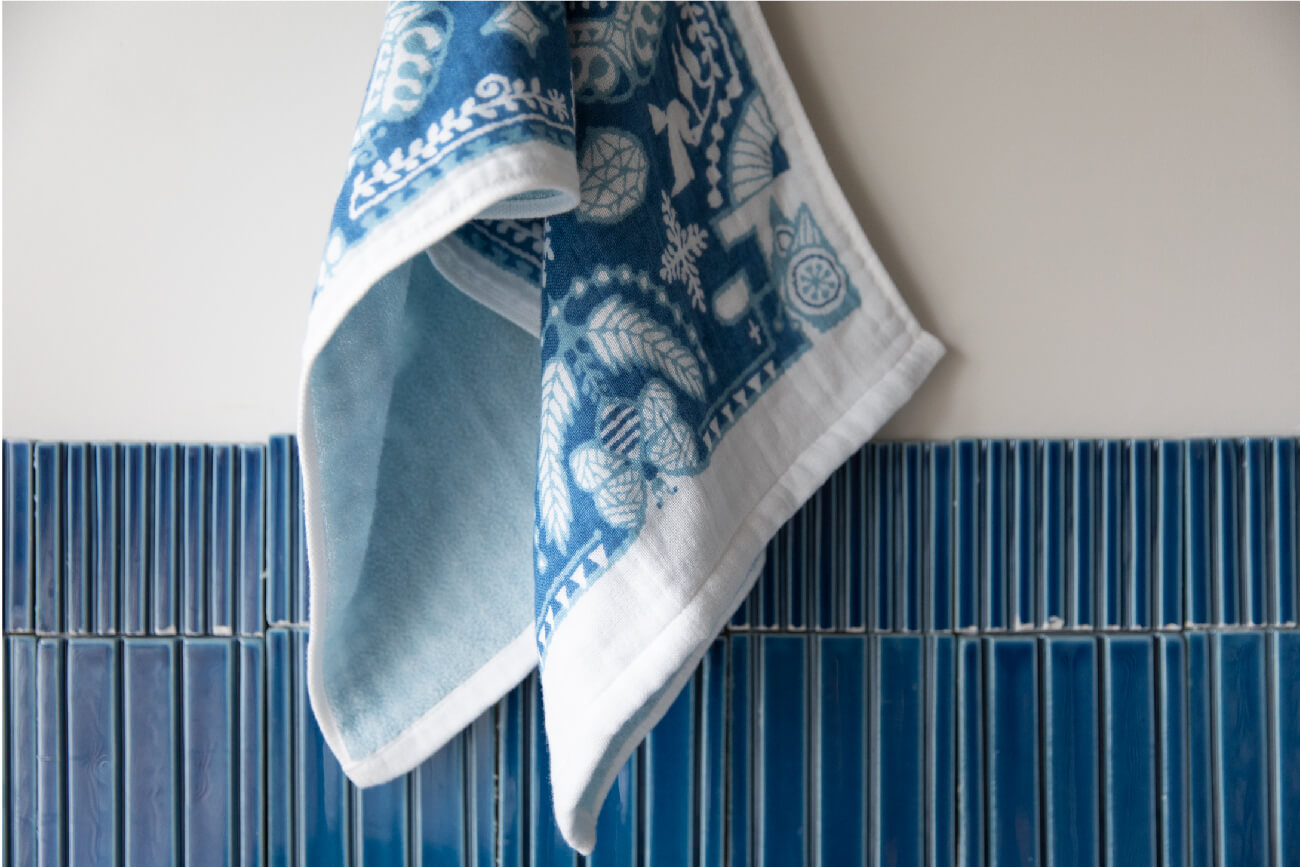 織りとプリント、ふたつのデザイン。2003年のデビュー時、やさしいタオルのデザインは、