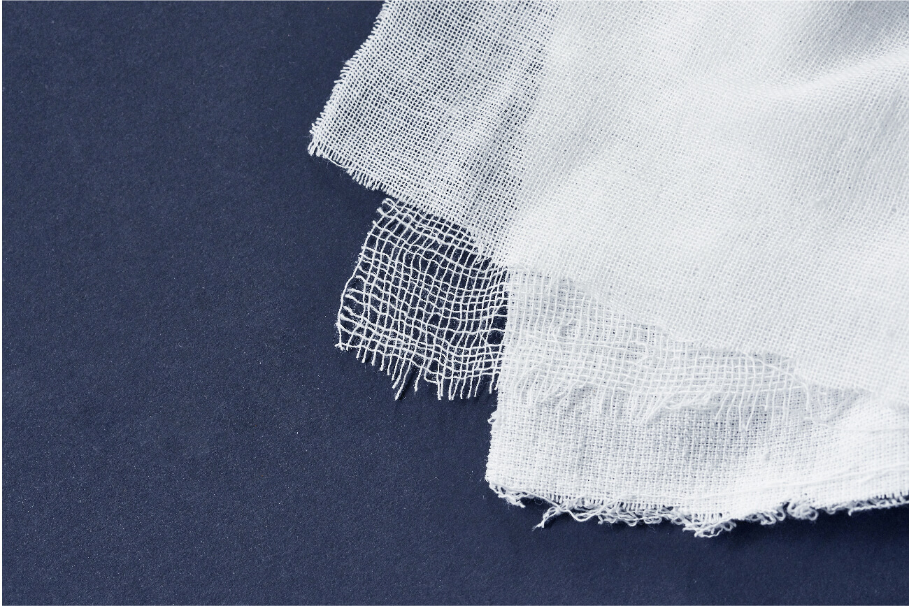 ガーゼは、木綿の風合い。木綿のさらっとした風合いを大切にするために、