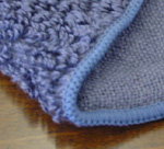 <やさしいタオル>には、ハンドタオル、 フェイスタオル、バスタオルの3種類がありますが、 織機の関係で、ハンドタオルだけ、 左右の端の始末の方法が違います。 ミシンでかがる方法をとっているのです。 こんな感じで、ミシンでまつられています。 (この写真は、ミシンのところを強調するために、 色に加工をくわえています。) できるだけ、タオルを作るための糸と 収縮率のちかい糸を使っていますが、 それでも糸に性質の違いがあるために、 洗濯・乾燥を繰り返し、使っているうちに、 端が波打ってしまう可能性があります。 洗濯後に干すときなどに、 ピンと端を伸ばしてから干すと、 波打ちは軽減されますよ。 また、ふつうのハンカチと同じように、 乾燥後、アイロンをかけていただくのも よいと思います。