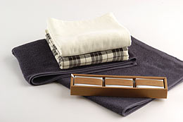 ![]() 1)プレゼント用パッケージ 普段は、ほぼ日の商品は、 黄色のロゴが印刷されている紙製の宅配袋での お届けになりますが、プレゼント用には、 特製のパッケージをつくりました。 ※梱包できるタオルの枚数は、 かなり幅を持たせて設定してあります。 バスタオルならば2〜3枚程度、 フェイスタオルならば、6〜9枚程度、 ハンドタオルならば、10〜15枚程度です。 (GUEST&MEとの同梱も可能です。) これ以上の枚数になるときは、 ほぼ日ストア([email protected])まで ご相談くださいね。 2)メッセージカード <やさしいタオル>オリジナルの メッセージカードをご用意いたしました。 大きさはポストカード大。 3)<やさしいタオル>説明書。 プレゼントされた方にも、 <やさしいタオル>がどんなタオルなのか わかっていただけるように、 説明書をご用意いたしました。