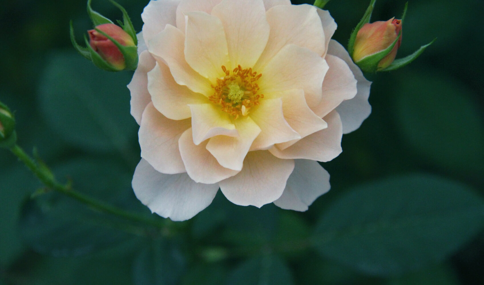 れんげのような花姿で、ばらから華やかさを引いたような、
