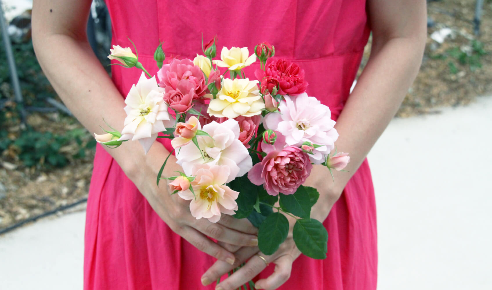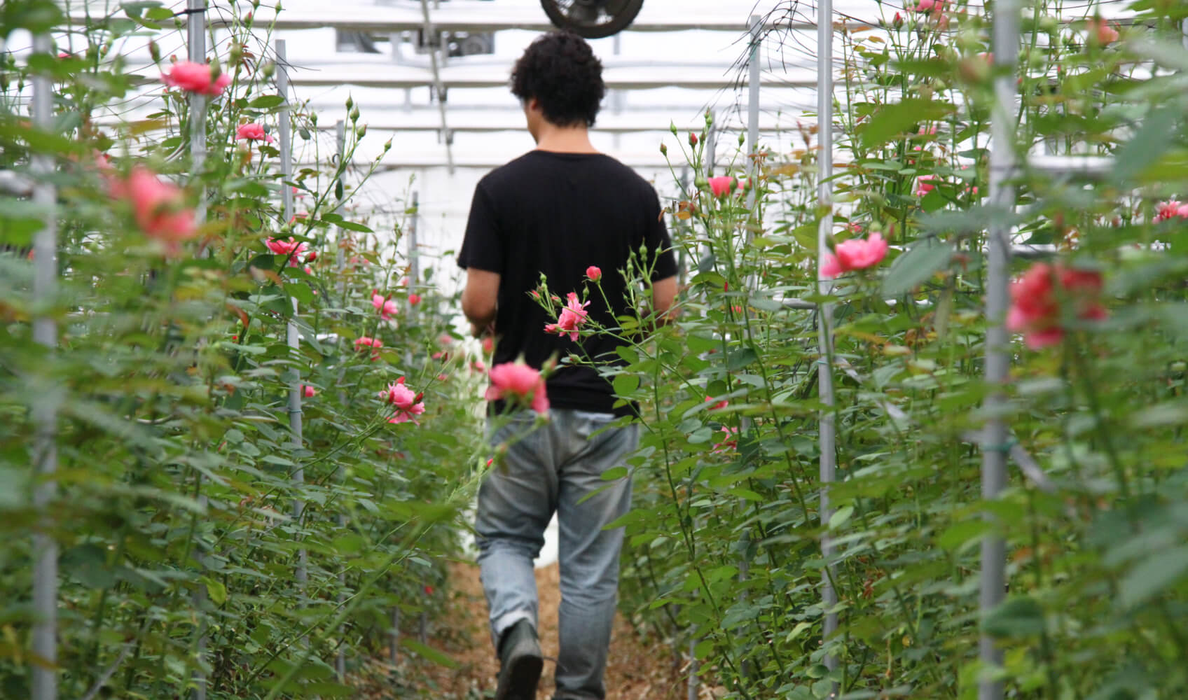 2003年に立ち上げ、現在約65品種の和ばらを栽培しています。