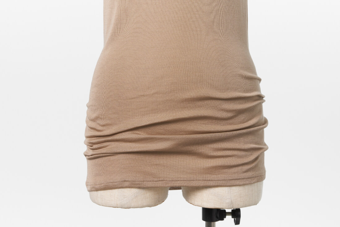 脇に縫い目がないので、おなかをすっぽり包みこみ、