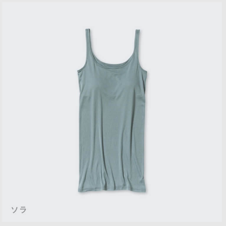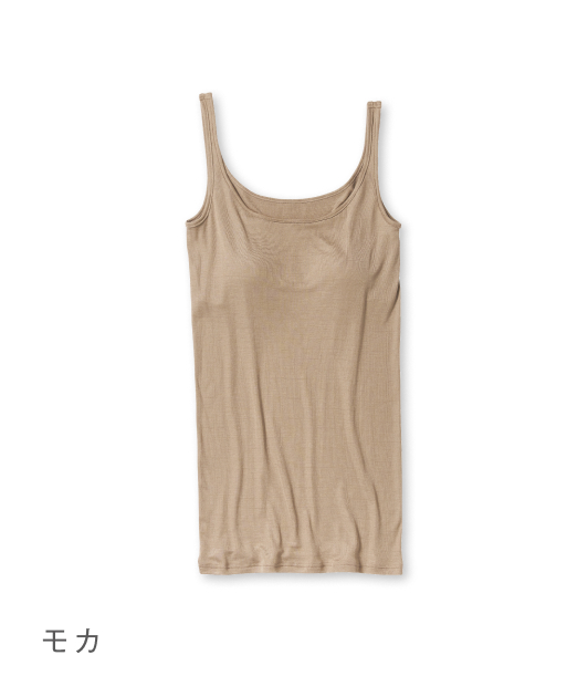 特別なシルク100%でつくったカップ付タンクトップ。