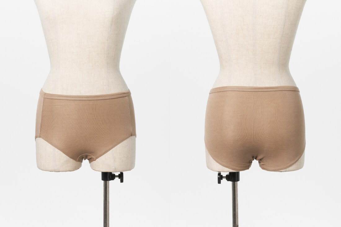 ウエストや足ぐりはやわらかいゴムをシルクでくるんで、