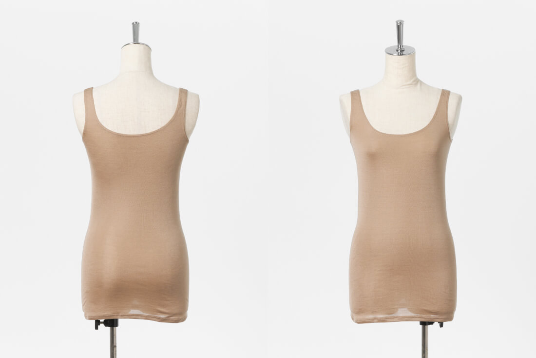 脇に縫い目がないので、おなかをすっぽり包みこみ、