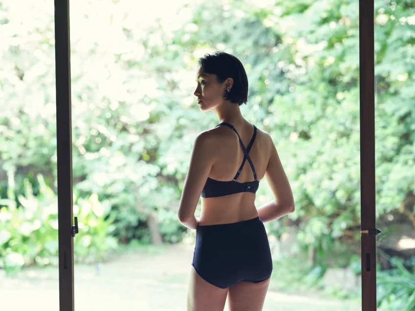 惠谷 ああ、そうかもしれないですね。 ショーツは生地の伸縮性を活かして、 立体裁断でおしりを包み込みながら ヒップラインをきれいに見せてくれます。 でも、リンパは流れやすいように、 鼠径部にはゴムを入れていません。