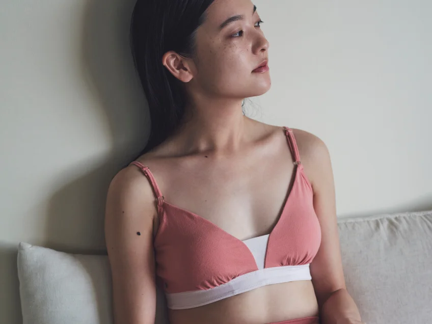 ジャンボ そうそう。 いろいろ探して、けっきょく、 さらしみたいに胸を巻くタイプのものを 使っていたんだけど、 胸が押しつぶされているような感じで きつくてすぐに手放しちゃいました。 そのあとは、ノンワイヤーで オーガニックコットン素材のものを見つけて。 昼夜兼用のブラで、着心地はよかったんだけど、 それもちょっときつかったですね。