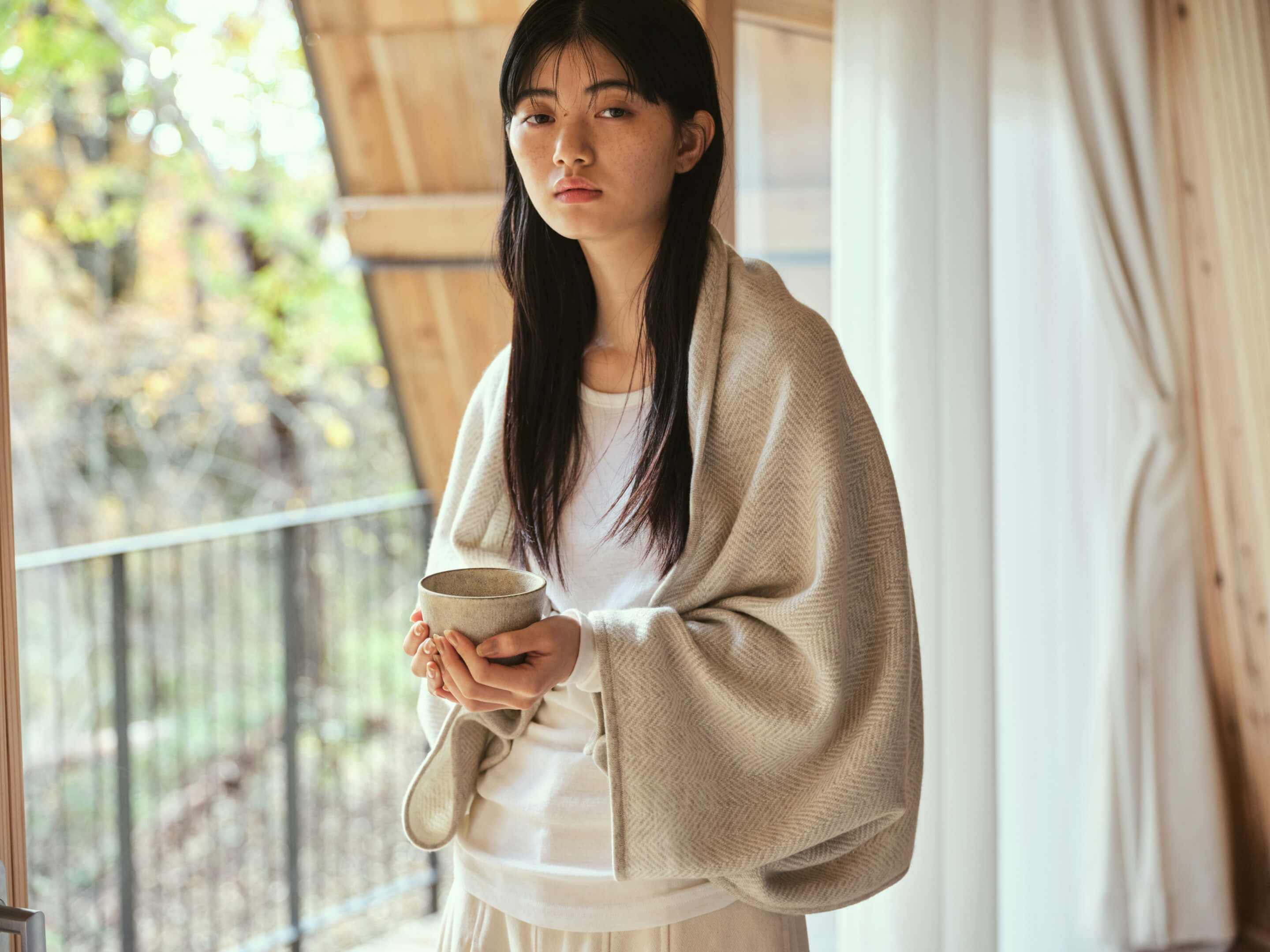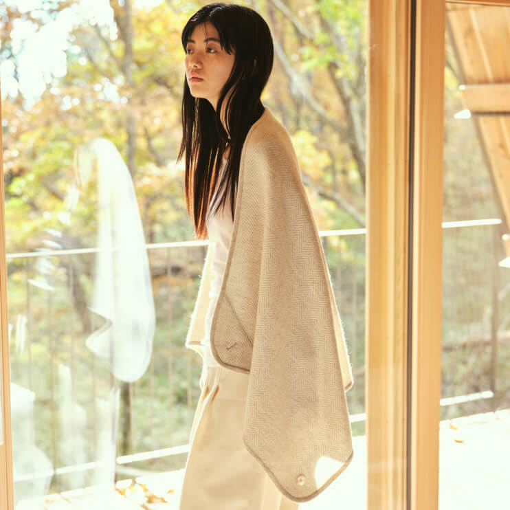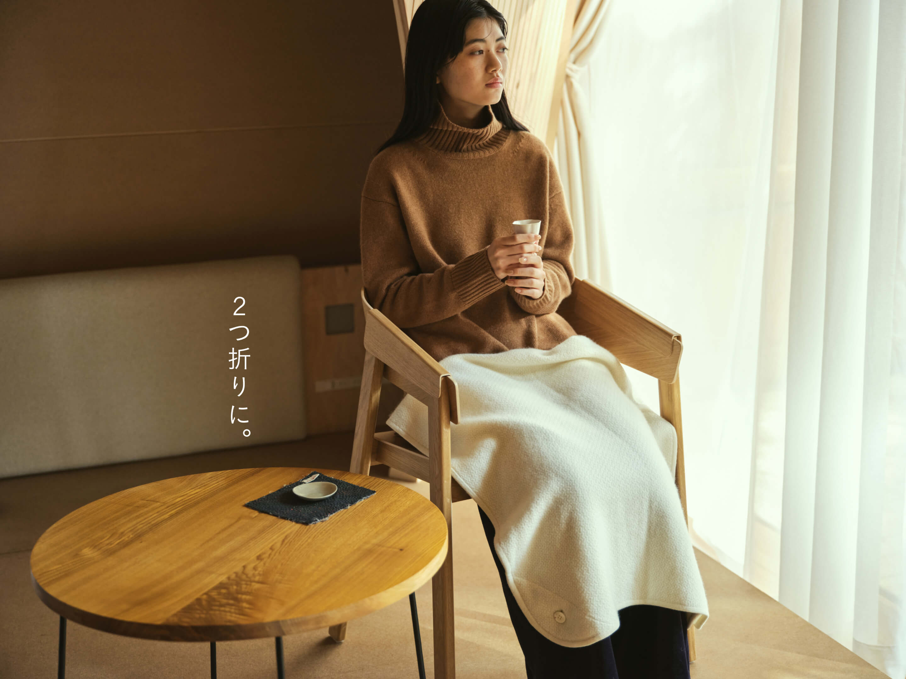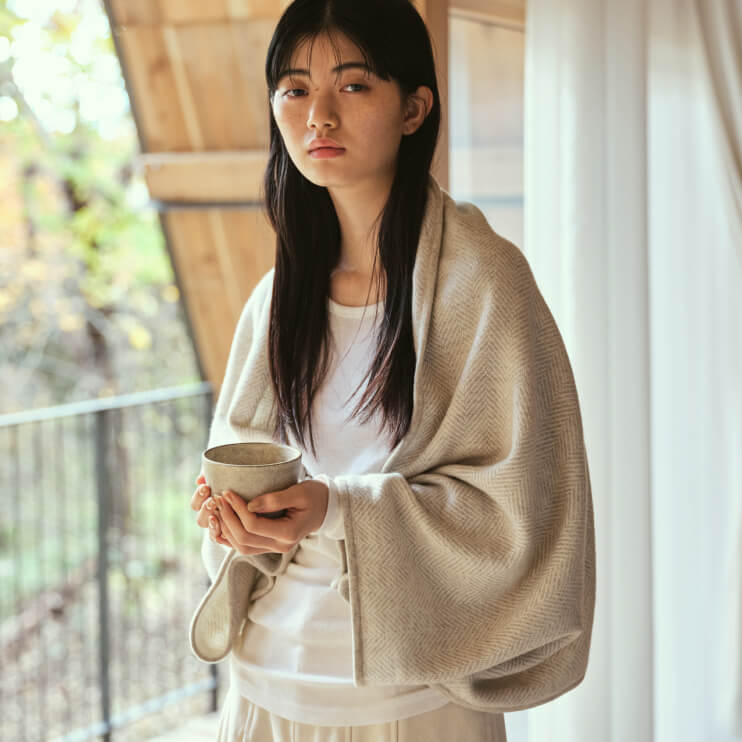 カシミヤ100%で、気持ちがよくて万能な一枚です。