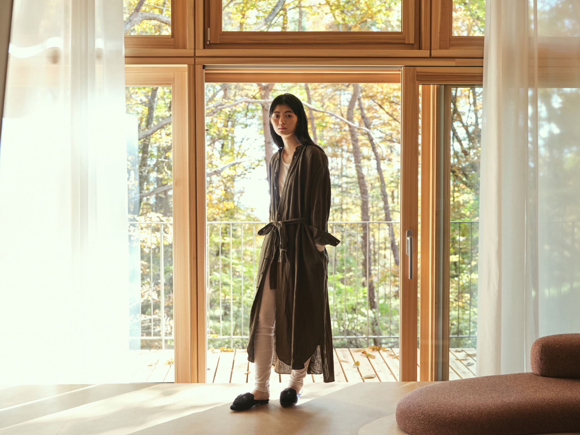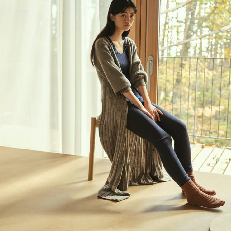 ワイドパンツやワンピースの重ね着にもぴったり。