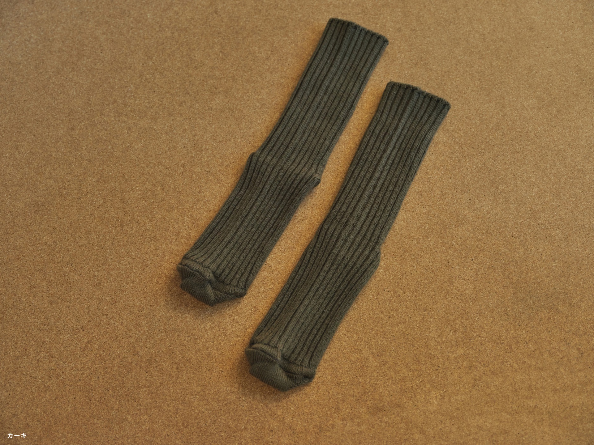 ○メリノウールの靴下(カーキ・22‐24cm)