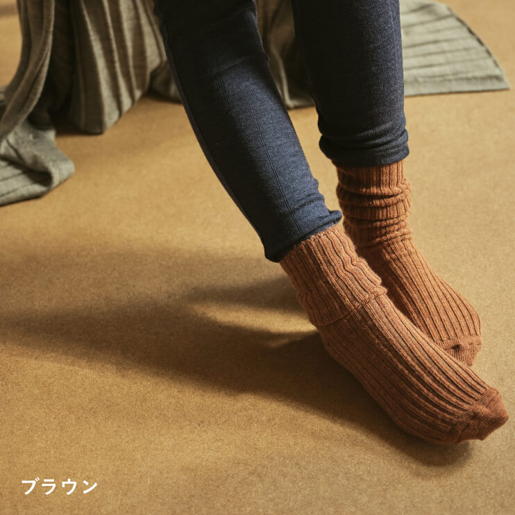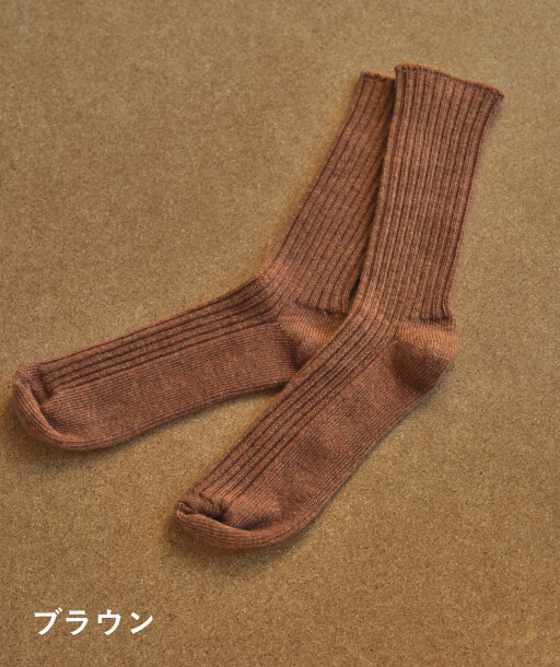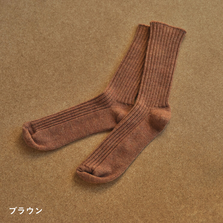 ○メリノウールの靴下(ブラウン・22‐24cm)