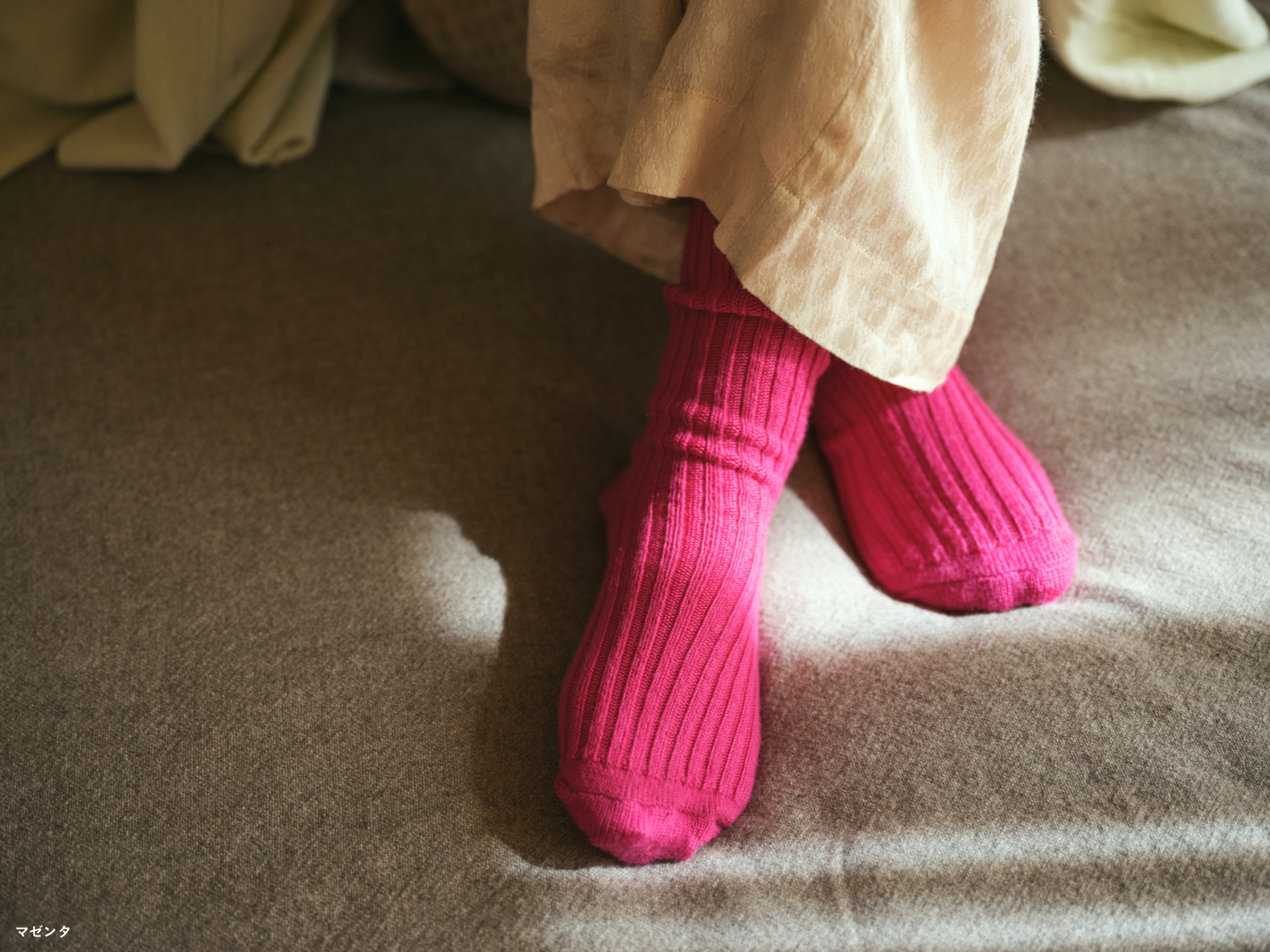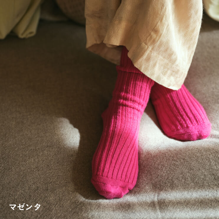 ○メリノウールの靴下(マゼンタ・22-24cm)