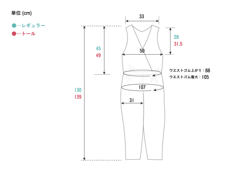 | レギュラー | 130cm | 50cm | 33cm | 28cm | 45cm | 88cm | 105cm | 107cm | 31cm |