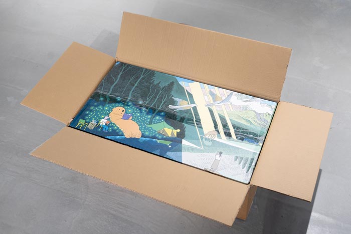 テント本体(kohaku、kohaku duo)は、西村ツチカさんのイラストを全面にあしらった化粧箱に入っています。