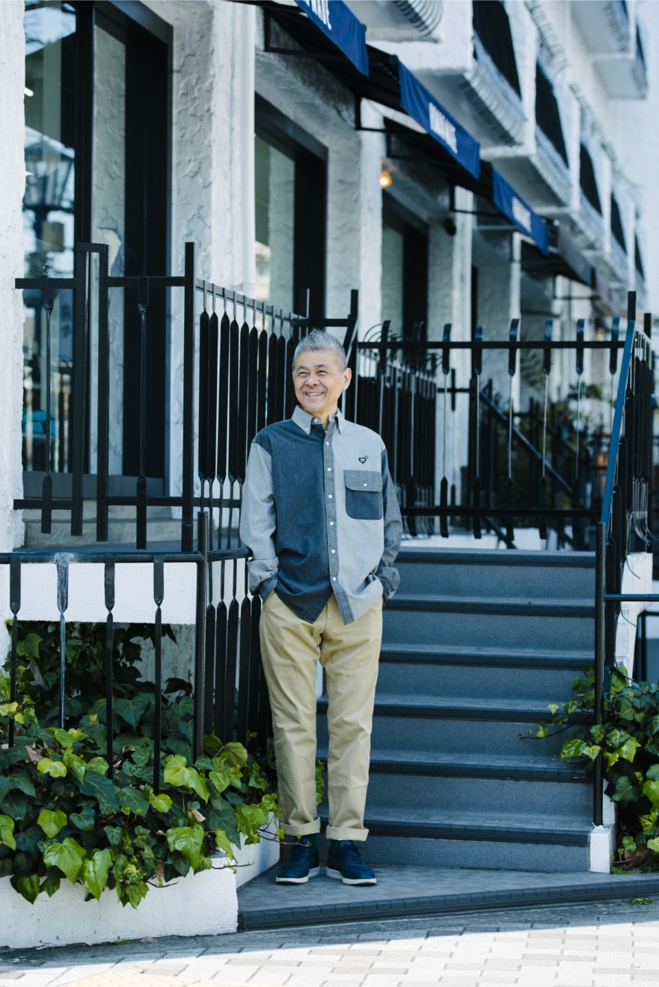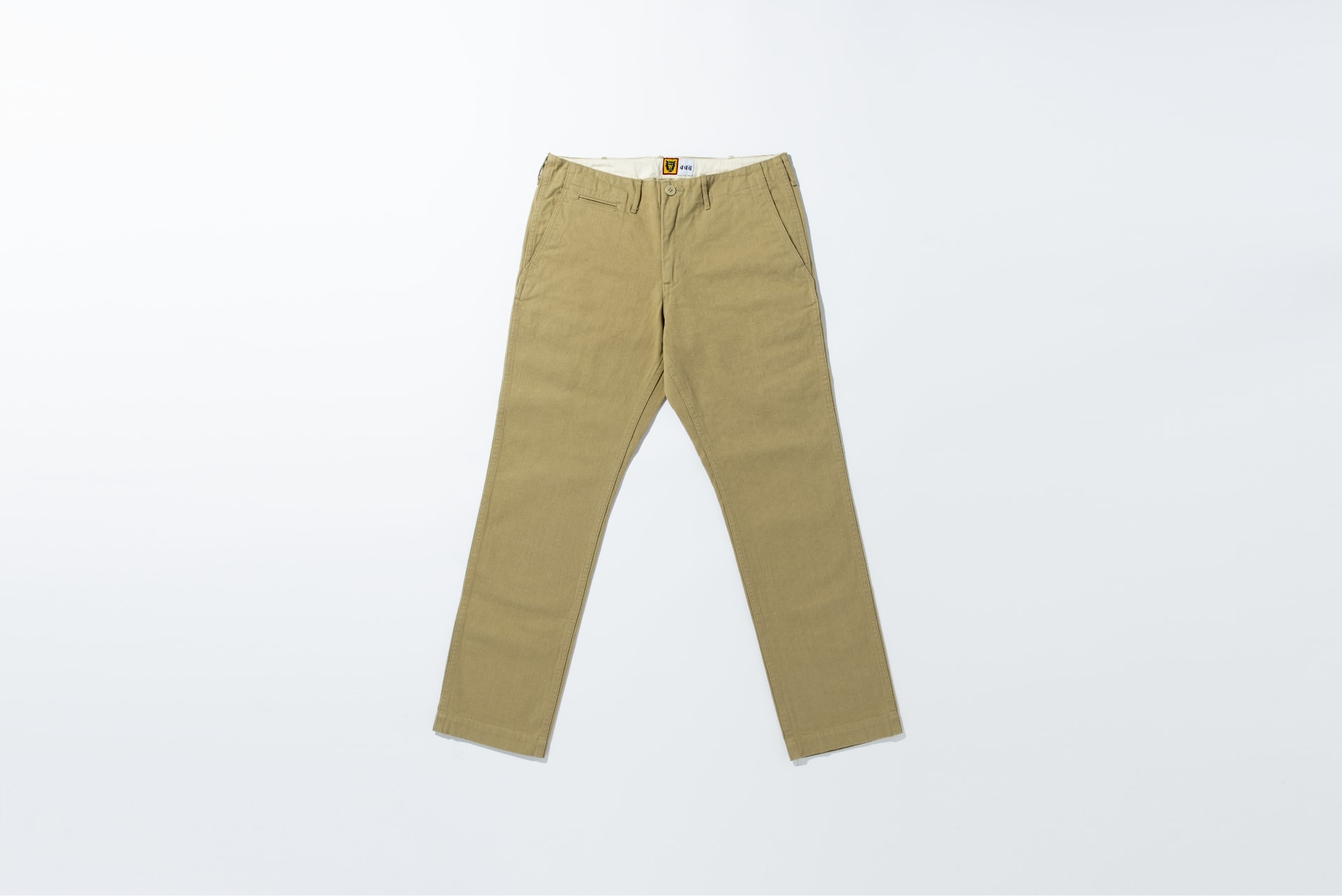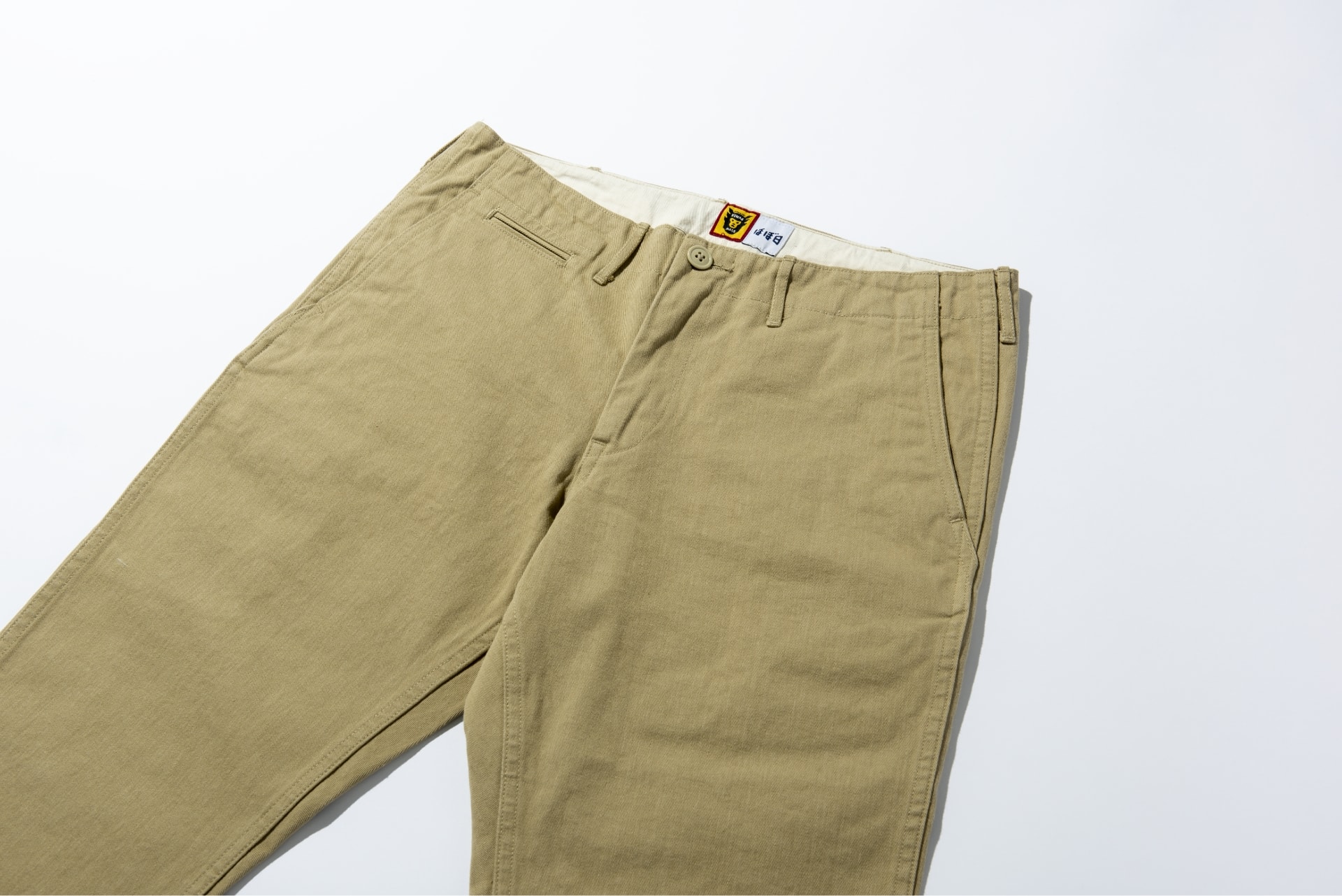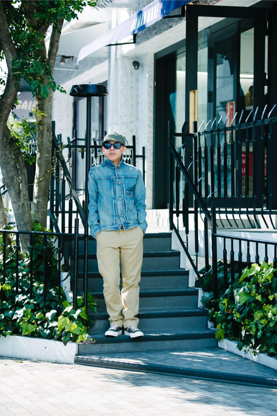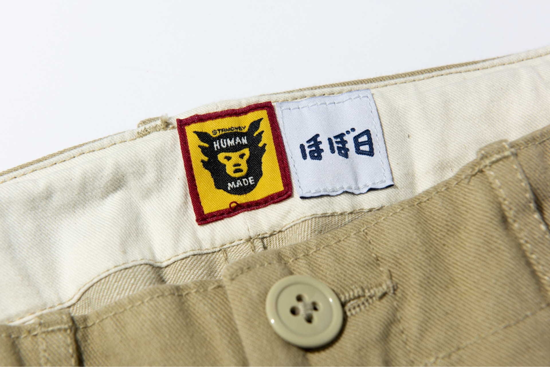 東京・外苑前に構える旗艦店HUMAN MADE OFFLINE STOREにて。「古着が好きで、永遠のスタンダードに憧れます。1930年代のアメリカで作られたチノにも、現代で考えればスマートフォンは必須。ポケットに一癖、機能性を持たせました」 ――NIGO®
