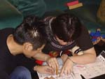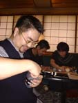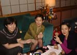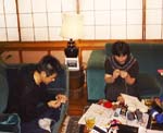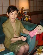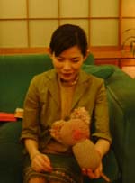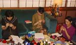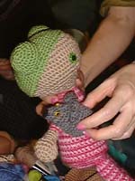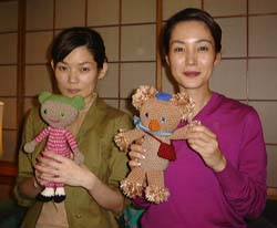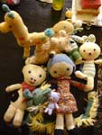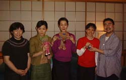 「からこちゃん」「こあら」の完成!! ずーっとあみつづけだった 高森先生、カグチさん、そしてみねさん お疲れさまでした。 最後に、 今日できた作品、 「からこちゃん」「こあら」「ねずみ」 といっしょに。 左から、みねさん、高森先生、カグチさん。 いちおう、もぎ・カエル、シェフ・武井も まぜてもらいました。