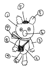「こあら」は鼻とベレー帽の部分にも、綿を入れます。
