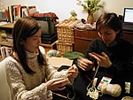 天使くん、編みはじめましたよ〜〜!!![]() 「あみぐるみコンテスト」の応募受付開始ももう間近!! そろそろ本気ではじめなければ 初心者のわたしには間に合わないよー。 まずはみねさんの編み物講座をじっくり読んで、 ふむふむ・・・。 なんとなくはわかったけれど、 何しろ編み物なるものに生まれてこのかた 一度も触れてたことのないわたしには どうにもこうにも不安がいっぱい! 気持ちは焦るが手は思うように動かず・・・ さあ困ったぞ。 ここでまたまた、毛糸とかぎ針を持って 高森先生のところへ習いに行きました!! と、その前に、高森先生のお部屋で 毛糸ではないナニカで編まれた、 不思議な物体を発見! 先生にナイショでじーっとのぞいてみると、 ゴムチューブを細編みで編んでいる途中みたい! そうかっ、なるほど。 今回の「あみぐるみコンテスト」は、 編む素材は“編める素材のものなら何でもよし” ということだから、 先生は毛糸以外の素材でも編んでみたのねっ。 そのナゾの物体はまだコースターくらいの 大きさだったけど、 きっとこれがあみぐるみになるにちがいない。 みなさんも、細いゴムチューブであみぐるみを作ったら すごくかわいいかもよ〜〜!! 毛糸以外で作るならぜひぜひおすすめだよ。 さて、初心者あややは毛糸の持ち方からお勉強です。 そのくらいカンタンよ。 しかしさっそく先生からのご指摘が・・・ 「あややちゃん!! 毛糸は右手じゃなくて左手で持って!!!」 ![]() あっ・・・そ、そうですよね、 右手はふつうかぎ針を持つんですよね。 とまあ、こんな感じ前途多難なスタートではありましたが、 ひとまず、超基本的な編み方“細編み”を せっせと大特訓しました!! ![]() 最初はどうなることかと思いながら、 やればやるほどどんどん夢中になっていく感じ。 心の中ではすっかり “アン・ドゥ・トロワ”のリズムを奏でながら 軽快に(?)細編みがすすんでいったよ。 途中で1回休憩したけど、あとはまったく休まずに ひたすら編み続けて7時間!! ついに完成よーん。 あっ、「天使くん」じゃないよ、 天使くんの「あたま」がだよ。 ![]() たまねぎみたいでかわいいでしょ〜? 鼠穴スタッフは、これを見て 「エロチック部門で応募すれば」とか言うけど、 これは正真正銘、天使くんのあたまだよーー!! ちなみに不器用大魔王のあややは だんだん段がすすんでいくにつれて 目が荒くなっていき、あたまの最後の段は “1センチ四方”だとdarlingにつっこまれ、 中に詰めた綿は当然スケスケに見えているのでしたっ。 でも毛糸が生成りっぽいクリーム色だから、 中の綿が目立たないもーん!! みなさんもぜひ一緒に天使くんを編んでくださいね!! 近いうちにあややは体を編みはじめますよー。 <高森先生のワンポイントアドバイス> ●天使くんははじめにいきなり “難ポイント”が登場します。 「あたまのてっぺんのとんがっている部分」です。 ここは少ない目数で3段編むのがとても難しいです。 ほんとに小さな円を ひたすら編み続けるんですもの。 ここをまず丁寧にかつ慎重に編むことが大切!! ●あたまの部分の6段目から9段目は 規則正しく7目ずつ増えていくので 自分なりのリズムを作ると作り易い! 例)アン.ドゥ・トロワなど ●編み物初挑戦の人は、編み目がゆるくなりすぎて 穴が開いてしまっているように見えるから、 なるべく綿の色(白)に近い色を選びましょう!! ●反対に編み目がきつくて、 固いあみぐるみになってしまう人は、 かぎ針の号数を大きくすると、 針が太くなる分、編み目も大きくなってゆったりするよ。 ![]() 高森先生のイラストです。 <きょうのスペシャルニュース!!> あみぐるみコンテストのチラシができました!! 近々、全国の手芸店やいろんな学校の手芸部などに お送りするつもりです!! ★あみぐるみコンテストの応募要項は、 こちらをごらんください。 |