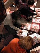 チラシの束に 「あみぐるみコンテスト」のポスターを