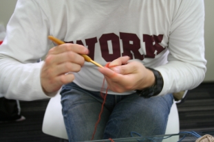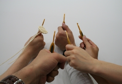 で、ええと、1個だけ編んだのを持ってきました。 |