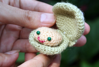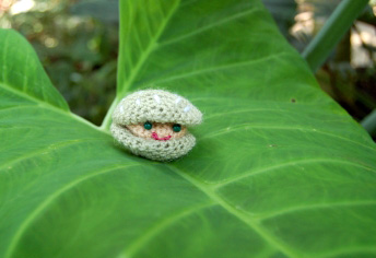 葉っぱの上にちょこんと貝ちゃん、うれしそう。