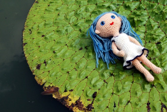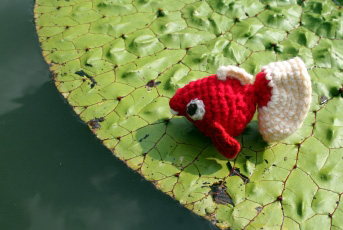 蓮の葉の上でお昼寝。青空見上げて、きもちよさそう。
