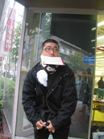 ちょっとした振動で急に開いてしまうボロ傘で行く。