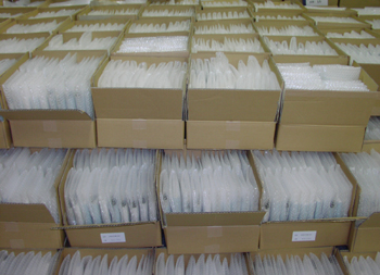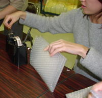 ぜーんぶまとめて、透明のプチプチ袋に入れる作業です。