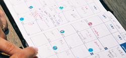 年間予定表は“息子の行事手帳”として使っていて、 “始業式”“保護者会”“防災訓練” といったことを書いてます。 わたし、シールも活用しているんですけど、 息子の保育園の卒園式には、 “悲しいマーク”のシールを貼ったりして、 ちょっとした遊びごころもくわえながらつかってます! あと、夫とシッターさんと連携シフトを組みながら、 子育てをしているので、シールを貼っておくと、 「今日は、誰が担当の日」ということも、 ひと目でわかるんですよ。 ![]() 青いシールは“パパ担当の日”なのですが、 そういう日は、夫の仕事がお休みで、 息子のお迎えに行ってもらったりできるから、 「この日は、夜おそくまで会社に残れるなあ」 なんてことも考慮に入れて、仕事の予定を組んでいます。