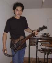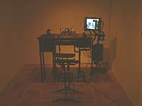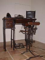 | 第12回(6月2日の暮らし) 鉄と木でできたマッキントッシュ。 はじめて自分のコンピュータに触れたときのことを、 みなさんは、覚えていますか? ぼくは、しばらく忘れていました。 はじめて自分のPCを買ったのが、去年の11月ですから、 つまり、まだ半年しか経っていないんですけど、 はじめて箱をあけたときのどきどきした気持ちなんて、 もう、忘れちゃってるんだよね〜。 ・・・と、ふと思ったきっかけは、 6月2日に訪れたある個展にあります。 ほぼ日の読者のかたが誘ってくださったんだけど、 この個展が、刺激的だった。 マックのG3が展示してあって・・・ これがG3! 作者の倉田さんは、 「iMac」というコンセプトをきっかけに、 「ほんとに私のマックをつくろう」と思われたそう。 G3が改造されて、ほとんど鉄と木だけでできている! ↑キーボードの感覚が、重くって、いいんだよね。 第一次世界大戦の野戦場とかで、特派員の ジャーナリストが使ったタイプライターのような。 ・・・あ、タイプライターがそんな場面で 使われてたかどうかは、ぼく、まったく知らないけど、 まあ、個人的なイメージとしては、そういうものでした。 重々しくて、ガシガシ手触りが来る。 ↑マウスが、電話なんだよ〜。これこれ! しかも、普通の電話としても、使える。 しかも、この電話で「1」とダイヤルをまわすと、 文字で「1」とタイプしたのとおんなじになるんだよ。 おしゃれさん。 ↑MOとCDロムを、ひき出しの中に入れるの。 「いやあ、自分で使いたくて作っただけですから、 どうしてもあれもこれもって思っちゃって」 作者の倉田さんは、そう言っていました。まっとう。 とにかく、ぼくにとっては、手触りがすべてでした。 「はじめて触る」って感じの違和感が、よかった。 文章も実際に書かせてもらったけれど、 慣れないから、じっくり機械と相談してキーを叩く。 それが新鮮でっ! ぼく、今、Windowsのノートパソコンを使ってるんです。 モバイルしやすくて、軽いから。 だけど、疲れたときにマック使うと、 ほっとするんだよね〜。 書くのも楽しくなるし。 そうやってつくづく感じていた次の日に この個展に行ったもんだから、 弘法筆を選ばずとは言うけれど、道具も大事だよなあ、 と、何だか単純なことを思う今日この頃です。 とにかく、タイピングはすごく楽しい!というのに、 あらためて気づかされたんだよ〜!!!!!!! ほら、最初にワープロを使いはじめたとき、 「タイピングしている自分」の図に酔ったでしょ? それに近いものが、ありました。 どきどきして、うるおった〜! 同時に、新しいPC欲しくなっちゃったよ。 アップル原田さーん、 木のマックのノートパソコン作ってぇー。 そしたら、絶対に買いますよ、ぼく。 倉田光吾郎さん、 ほぼ日にメールをくれた戸村さん、 どーも、ありがとうございました! 今回の「ほぼ日事件簿」は、 わたくし木村がお送りいたしましたっ。あでゅう。 この人が倉田さん。 「ま、鍛冶屋のようなもんなんですけどね。 鉄をいじってもの作ってたら賞もらって、 それで気をよくして今までやってるようなもんで」 というコメントが、自然でかっこよかったっすよ。 鉄をつかってでいろいろなものを作ってるんだけど、 とにかく、さわやかでした。応援したいです。 これからも、自分で使いたいものを作るんだろうなあ。 この個展は、 中央区銀座5-3-13ヤジマギャラリーで、 6月11日までやっているみたいだよ。ぃよろしく。 |