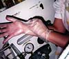 | 第18回(1月16日の暮らし) 腸内洗浄レポート〜挿入されて・・・の巻 (前回までのあらまし) 『腸内洗浄』という目新しい名前に惹かれ、 自ら被験者を引き受けたROCK西本であったが、 タイアップ元である「シネスイッチ銀座」吉澤嬢の 「最後まで見届けるわよ」発言により、 自分の便が衆人監視にさらされることになった。 「それは趣味なのか?仕事なのか?」 という困惑するROCK西本をよそに、 映画「ホテル・スプレンディド」のチラシ、ポスターを せっせと治療室に貼りまくる吉澤嬢であった。 ![]() まだまだ貼るわよ。 一旦、全裸になって治療服に着替え、 これから挿入される不安と 異性に自分の便を見られるという恥ずかしさに 悩まされ、一人呆然とするぼくでしたが、 もう逃げることは出来ないと腹をくくりました。 ![]() そろそろ覚悟を決めた。 「これは治療ではなく、そういうプレイなのだ。」 と覚悟を決めると気が楽になるもので、 回りにあるものをごそごそと観察し始めました。 まず目に入ってきたのが、 ぼくのお尻と腸内洗浄器を結ぶ透明な管。 袋に入っていることから、使い捨てであることが解ります。 だから清潔、安心。 ![]() こいつがぼくの中に・・・ さらに、ネットで検索して以来、 興味があった、「麻酔ゼリー」も発見。 こうなると宝探しのようで楽しくなってきます。 ![]() 麻酔ゼリー発見! こうなると、人間恐ろしいもので 「さぁ、矢でも鉄砲でも持ってきやがれ!バッチ来い!」 とお尻を突き出すくらいにまで開き直ってきました。 そうしているとぼくの治療を担当してくれる 看護婦の大塚さんが現れました。 「今日は大塚さん頼んだぞ!」と心の中で叫びながら、 「初めてなので、やさしくお願いします。」 とお願いしました。 大塚さんはぼくの心を解きほぐすように、 これから行われることを説明してくれます。 ![]() 腸内洗浄ってのはですね。 やはり初めての方は緊張される方が多いらしく、 緊張したままだと、上手く便が出ないケースも あるのだとか。 ゆっくり時間をかけて説明して心をリラックスさせながら 治療は進みます。 ![]() 手首とお腹に 特別調合のアロマオイルを 塗ってもらいます。 ひととおり、説明が済んだところで 大塚さんが 「それじゃ、直腸診をしますね。」 とビニール手袋を付け始めました。 ![]() それでは仰向けになってください。 『直腸診』 それはお尻に指を突っ込んで 直腸まわりに傷や、異変が無いかをチェックすること。 いよいよ、本格的になってきました。 立て膝をして仰向けに寝てます。 下半身には当然、タオルケットがかけられていますから、 吉澤さんにも恥ずかしい部分は見られないので 安心して診断に望みます。 指が入るだけですから、座薬みたいなものです。 直腸診は問題無く、終了。 今まではただの検査。 これからが腸内洗浄の治療です。 まずはお尻とこれから入れる管に 「麻酔ゼリー」を塗ります。 麻酔ゼリーを塗ると、挿入の際の違和感が軽減される とのこと。 「ホントかよ?」 とこれから入れる管を見ると、 「これがデカイ!」 全長15センチ、直径2〜3センチのもある まさしく『棒』そのもの。 「ええ〜こんなデカイのが入るんですか?」 「ええ、そうですよ。」 とまぁ、あっさり答える大塚さん。 ![]() これが入るのだ! 「それでは横向きになってください」 という大塚さんの指示通りに横向きに寝る。 いよいよ、本番。 ピーンと締まった空気が個室を支配する。 もうこれは儀式だ。 これには、それまであれだけ騒いでいた吉澤さんも 静かにならざるを得ない。 もはや『プレイ』と割り切っているぼくは その緊張すらも楽しめる状況にまでに高まっている。 ![]() プレッシャーを楽しむおれ。 しかし、いくらプレッシャーすらも味方につけ、 麻酔ゼリーを完璧に塗られたぼくであっても、 全長15センチ、直径2〜3センチの 『棒』には勝てなかった。 言葉では伝えきれない、その状況。 3枚の連続写真で感じとってください。 (やらせ一切無し。) ![]() 入りますよ。 ![]() うわっ! ![]() 入ったぁ〜。 一回、入ってしまったら後は楽なんだけどね。 それでは次回、治療篇でお会いしましょう。 今回の挿入篇だけで25枚の写真を撮り切った、 シネスイッチ銀座の吉澤さんからのお知らせ。 「ホテル・スプレンディド」の公開は 2月10日からですが、 2月14日のヴァレンタインデーには 「ホテル・スプレンディド」を 観に来て頂いた方に「腸内洗浄」招待券 (初診料10000円&18000円)を10名様と 初診料10000円OFFの、 ご優待券を500名様にプレゼントをします。 |