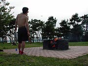 | <燃やしてきたぜ!> こんにちは。 単に誕生日が7月7日だということで ミスター七夕を気取るROCK西本です。 最初に断っておくと、 今回のお話は「燃やした」ってことだけです。 さて、7月7日に恵比寿で行われた、 ほぼ日七夕イベントへ多数のご来場、 ありがとうございました。 https://www.1101.com/store/HOBOT/010707.html 当日、会場では大勢の皆さまには 短冊に「願い事」を書いてもらいました。 10本用意した笹が願い事で一杯になったもんなぁ。 皆さんの思いが詰まったこの短冊。 そのまま燃えるゴミとして、 東京都のゴミ袋に入れて捨てるなんてことはせず、 みんなの願い事を叶えるためにも 短冊を燃やして供養することにしました。 (これって、供養って言うのかなぁ。) 短冊を燃やす為だけなのに、 キャンプ場に予約なんかいれちゃいまして、 供養スポットである若洲公園へ 発送隊の「う〜さん」と二人仲良く出かけました。 このキャンプ場に来るのは アウトドアダイニング部以来です。 あの時は寒かったから、 火を起こすのも楽しかったけど、 今回は炎天下だ。 真夏の平日、キャンプ場は閑散としていた。 ![]() 誰もいねえよ 海に一番近いところに陣取って 火をつける段取りを始めるう〜さん。 こういう時は彼は間違いなく率先して動く男だ。 そんな彼が書いた短冊には 「家が欲しい」とだけ書いてあった。 そうなのだ、彼は仮性ホームレスだったのだ。 1泊200円だし、 いっそ、このキャンプ場に住んだ方がいいのでは? と思わせる手際の良さで火を起こすう〜さん。 こんな時は決まって傍観者を決め込む俺。 そう、ミスター七夕は面倒くさがり屋さんなのだ。 <減点俺> 火が着いてからが本番だ。 ミスター七夕としての役割はそれからだ。 う〜さんに、ポカリスエットを与えて 少し気を良くしてもらうことにした。 <加点俺> 大体、こういうときの俺はむちゃくちゃ冴えている。 ![]() ポカリで買収されたう〜さん 新聞紙につけた火だけで、薪が燃え始めた。 梅雨なのに乾燥しているのだろうか? それともホントにう〜さんの腕が良いのか解らないが、 あっという間に準備が出来た。 ![]() 準備おっけーッス ようし、準備は出来た。 ここからが、ミスター七夕の出番だ。 ミスター七夕は基本的に「いいとこどり」が好きだ。 おおりゃぁぁあぁ! と笹を投げ込む俺。 燃える短冊!破裂する笹! 暑い!熱い!アツイ! ![]() ひるむ俺 この熱さに耐えろ!耐えてこそ、 ミスター七夕ぞ! という天の声を聞いたかどうかは解らぬが Tシャツを脱ぎ捨て、 一心不乱に笹を火に投げ込む我ら。 傍目には会計帳簿を証拠隠滅をする チンピラのように映っているんじゃないか?ってな どうでもいいことを考えること10分あまり。 全ての笹を燃やし切った。 <加点俺> ![]() そして燃えた…。 みなさんの願い事が叶いますように。 来年もやるかも(?) |