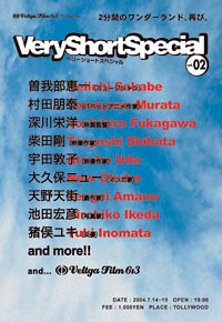 | 2分間の映画を次々に上映?! ショートフィルムイベント 『ベリーショートスペシャル#2』が始まります! ほぼにちわ、杉江と申します。 普段は、ほぼ日ストアの担当をしています。 どうでもいいことですが、北九州出身です。 どうぞよろしくお願いします。 さて、唐突ですが、 わたし、「短いもの」に目がないんです。 長編小説より短編、警句にショートショート、 漫画も2ページくらいで終わる方がいいし、 音楽だって、バーンときてすぐにガーンって くるやつがいいなあ。 ストーリーのある演劇よりショートコントが好き。 CMフェスティバルなんて聞いたら、 もう駆け込まずにはいられません! ガムより飴をガリガリ噛んで、 スターバックス・コーヒーでは もちろんショートサイズ、 ケーキ屋さんではショートケーキ、 美容室では、いつものショートに‥‥ (ああ、長くなってしまいました!) いや、とにかく、 エッセンスがぎゅっとつまった、 コンパクトなものが大好きなんです。 そんなところに届いたのが、 ショートフィルムイベント 『ベリーショートスペシャル#2』 のご案内メールでした。