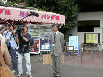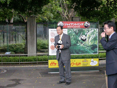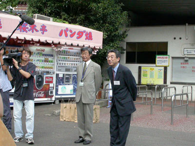 2004年9月7日。 「ほぼ日」初の広告看板が上野動物園に登場です。 では、行きますよ〜〜。 ![]() まず、入り口の前で集合。 副園長の吉田さんにご挨拶しました。 ![]() 副園長の吉田さんと、総務課の熊倉さんです。 カメラを持っているのは、フジテレビさん。 ![]() 入ってすぐに到着したのは、 激戦地のパンダ前。 運良くパンダ前をゲットしたのは、 ペットフードの森乳サンワールドさんです。 ![]() 記念のぬいぐるみをもらい、 なにかひとことお願いされてました。 パンダ用のミルクも作っていらっしゃるそうです。 ![]() ここがサル山前です。 看板の主になったのは、お口の恋人LOTTEさんです。 ガーナチョコレート、大好きです。 ![]() サル山です。やっぱりサルはかわいかった。 でも、もう少し歩いたら、 サイが待ってるから大丈夫。さみしくない。 (モトキはO型です。) ![]() 環境啓発ボードは、アニマル・プラネットさん。 動物番組のCSチャンネルです。 来月の番組は犬特集だそうです。 ![]() 看板が動物園になじんでいました。 ![]() 関係ありませんが、バクです。 鼻がにょろにょろ動いていました。 夢は食べないで。 ![]() カバです。コビトカバも。 プリプリ、つるつるで、かわいい。 ![]() カバ前の看板は、オーマイシリーズの 日本製粉さんです。 「パスタの袋の赤い色が、きれいに出てよかったです」 とおっしゃっていました。 おいしいパスタで笑顔の家族を作ってね。 ![]() コビトカバ、ちっちゃい。 ![]() でました!! サイです!! ![]() 朝ご飯の時間だそうです。 おはようごサイます。 食べているのは、やサイですか? ![]() ほぼ日の「再見。」看板です。 やっぱりかっこいい!! サイこうです。 解説よりも派手? ![]() デザインしたアッキィさんも、ちよこちゃんと一緒に 観に行く予定です。 ![]() テレビのニュースでも流れていたと、 たくさんのかたからメールをいただきました。 お知らせ、ありがとうごサイます。 ![]() 開園時間になり、遠足の園児たちが歩いてきました。 帽子がカラフル♪ 看板も見てってね。 ![]() 看板もいいよ。 ![]() 記念のぬいぐるみは、もちろんサイでした。 遠方にお住まいのみなさんも、 東京へお越しのサイは、 ぜひ上野動物園で、 動物達と看板を見に行ってくだサイね。 看板を設置してから サイの前に人が集まるようになった、 なんて言われるとサイこうなんですけど。 本日のレポートは以上です。 とくになんの事件もありませんでしたが、 上野動物園の雰囲気を感じてもらえたら、サイわいです。 ほな、サイなら! 上野動物園の情報はこちら! TOKYO ZOO NETでも、 今回のニュースがご覧いただけます。 メールマガジンもありますよ。