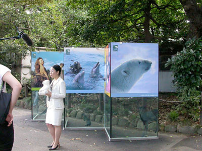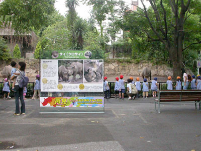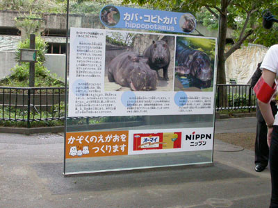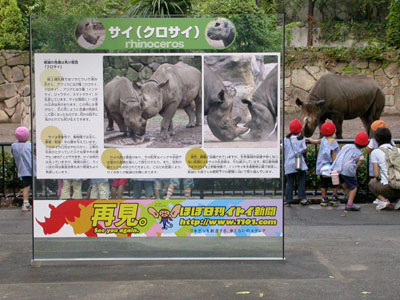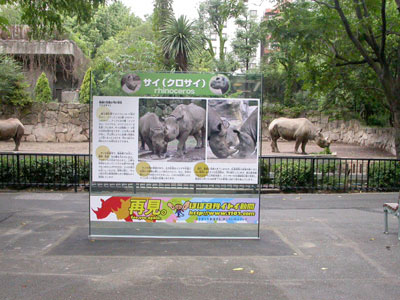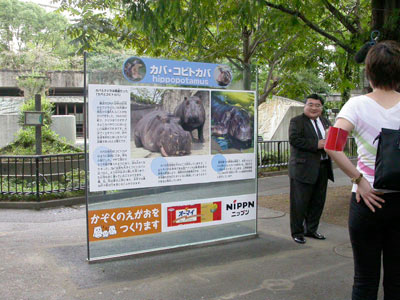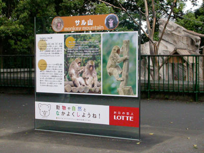 | <上野動物園の看板、 こんな感じでした。> ほぼにちわ。総務のモトキです。 昨日、このページで紹介させていただいた 上野動物園にある「ほぼ日」のサイ看板。 ※詳しくは昨日の「ほぼ日事件簿」のページから ご覧くださいね。 解説ボード看板のお披露目当日だった昨日、 上野動物園さんが、広告主のために 内覧会を開いてくだサイました。 開演前の朝の時間に、園内を案内してくださったのです。 朝、早かったけど平気でした。それは総務だから。 広告主さんと一緒に園内を回って、 気持ちのいい時間を過ごしました。 写真なんかも撮ってきたので、 簡単にご紹介しちゃいますね。 どうぞ、動物園をまわっているような気分で のんびりとご覧ください。
