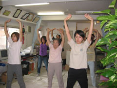 <少林寺気功の体験イベントに きのこのパスタを作りました。 どうもみなさんごきげんよう。ゆーないとです。 ある日、最近もっぱら上野動物園の動物たちと 急激に仲良くなっている総務モトキさんから、 「ちょっと顔貸せや」と言われ、連れて行かれたのは、 新宿2丁目、3丁目のあたり。別名『ほがらかタウン』。 なぜわたしが『ほがらかタウン』まで 顔を貸す羽目になったかと言うと、 今までにも「ほぼ日」で人体実験シリーズとして darlingをはじめ何度もお世話になっている 全日本少林寺気功協会 会長秦(シン)先生からの、 お誘いがあったのです。 来る9月23日、 新宿で僕と握手アルヨ! んなわきゃあない。 しかも「アルヨ!」って、漫画に出てくる 中国の人じゃないんだからさ〜。 しっかりしよ!自分!!バチン! なんでも全日本少林寺気功協会設立10周年を記念して、 記念イベントを行うらしく、 それになんとなんと無料で「ほぼ日」読者の方々を 抽選で10名さまをご招待してくださる!! ということでした。 すっっげ〜〜〜。 なになに??どんなお弁当、いやいやイベントかって?? そりゃあ、みんなでボディコン着て、 お立ち台に上って羽フワの扇子を振り回して、踊る。 んだよね! 古っ!! もうわたしよりも下の世代は、わかんないだろうな、 こんなこと言っても。 イベント内容は、このようになっております。 「少林寺気功と武術のすべて」 ・少林寺気功と武術の表演 ・少林寺気功と武術の日本における役割 (秦 西平講演) ・気功実技体験 ・外気功の体験 ・質疑応答 ふーん・・・よくわからないアルね! てなことで、まずは未体験である 特派員Aモトキと、 頭より体派の特派員Bゆーないとコンビで 行ってまいったわけです!!! その日は、いつも先生がやってる教室はなかったため、 急きょビルの一室の 先生のオフィス(全日本少林寺気功協会本部)で 数人の生徒さんを集めていただき、 即席体験教室を開いていただきました! 本部のあるビルの下には こんな看板も立っていました! おはようございますーーー。 今日はよろしくお願いします! うわっ!狭っ!! ビルの一室とは聞いていたけど・・・。 ここで、出来るのかなあ。 ゆーな、ちょっぴり心配★ まずは先生のお弟子さんから少し説明を受ける。 「じゃあ、先生いらっしゃるまで、 こちらをご覧になっててくださいー」 と、ビデオ見せていただく。 なんとお笑い女子芸人の「北陽」が 番組で「気」を受けてるシーン。 伊藤ちゃんは倒れて、なぜか体がピクピクけいれん状態! えええ!!! あぶちゃんはぼーっと立ったままユラユラ揺れてる! なんだこりゃ!なんで??? と思ったら、 サーモグラフィーで「気」を受けてる最中の 反応映像やら、学会風景。 先生ってなんと「気」で麻酔のような効果を 見いだしてしまったんだって!! なんだそりゃ! 歯の抜歯を普通の麻酔ではなく、 「気」をかけただけで成功させてしまったんだってよ。 「気」って何だ??てゆーか、先生は何者だー!! 「オハヨウゴザイマスー」 おおお! 秦先生だ!!おおおお〜〜〜。 「わたしたち、まったく無知なのですが、 今日はどうぞよろしくお願いします!」 おお、わたしたちがビデオを見ている間に、 他の生徒さんも集まってきてたんだね。 老若男女だね。 あ、ウチら着替え持ってきたんだったわ。 そろそろ着替えなきゃ。 あれ??でも・・・ 他の生徒さんたちは、ジーンズのまんまとかだけど。 きっと汗とかかくだろうに・・・。 そんな気軽なものなのかしら?? ちょっと張り切りすぎた? ビデオも見終わって、そろそろ始めましょうかムード。 「あのー着替えってどうしたらいいですか??」 「あ、お持ちでしたら、奥でお着替えになってください!」 「あ、は〜い」 先生からちょっと説明を受けて・・・ 早速始めていただきましょう! まずは体操?のようなものから始まります。 この光景なんか見たことあるぞ!!! あああ!わかったーーー! 中国の朝の公園じゃないコレ!? テレビで見るようなさ。 朝からみんなカンフー服みたいなのを着て、 公園だか広場みたいな所で 「ファーーーーー」 とか言いながら「ゆっくり体操」みたいなのやってる。 よくあるじゃん? あれよ!! 本当はちょっと違うんだろうけど、アレだわ。 ん?なに?? え、あ、太極拳っていうの?あそっ。じゃあ、それ。 体操中。 ここはビルの一室です。 ![]() しつこいようですが、見ての通りビルの一室。 「足の先から〜 いい気吸ってーーー病気出してーーー」 ほっほーーーー。 「いい気」を吸って、「病気を出す」のね! はい、コーチ! わたしの頭の中では、 きらきらしたオーロラみたいな光を吸って、 黒に近い紫色やら緑色やら茶色のどろーっとした 病気を出すイメージでやってみました!! 自分的にすっごい出てる感じするんですけど、 先生、どうですか!?出てますか!? おおっと、モッキー!! 手が変だぞ!モッキーこと特派員Aモトキも ちょっぴり困惑ぎみ。 先生の後ろの背番号26がモッキーです。 *オレイッ!(フラメンコ)ではありませ