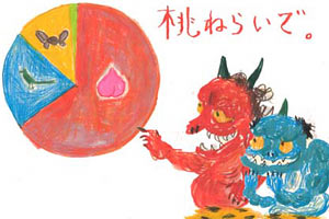 第1回 ![]() 日本人なら誰でも知っているだろう桃太郎。 あのお伽噺を聞くたびに、解せぬ思いに悩まされてきた。 なぜ家来が犬と猿と雉(キジ)なのか? 鬼退治に加勢を求める気持ちはわからないでもないが、 よりによって、なぜあの3匹なのか? 即戦力が必要なのであれば、 イヌよりはオオカミ サルよりはクマ キジよりはワシ をボクならば選ぶ。 イヌは認めるにしても、サルとキジは足手まといである。 イノシシでもフクロウでもいいから交代したほうがまし。 なんならマムシやスズメバチだっていい。 やつらのほうがよほど頼りになるだろう。 ![]() こんなもっともらしい説明がある。 鬼は鬼門と呼ばれる丑寅(ウシトラ):北東の方角から やってくるのだとか。 (鬼が牛の角を持ち、虎のふんどしを締めているのも ウシトラにちなんでいるんだって!) ともあれ、これを封じるために、 犬=戌(イヌ):西北西 雉=酉(トリ):西 猿=申(サル):西南西 が呼ばれたのだという。 この話はまゆつばである。 だってこの3匹で守れるのは誰が考えても西だろう。 裏鬼門は丑寅の逆の未申(ヒツジサル):南西なのだ。 なのにどうしてヒツジがいない? 酉=キジという解釈もあまり一般的ではない気がする。 一説によると、 イヌは忠誠心 サルは知恵 キジは勇気 の象徴だとか。 これも強引なこじつけにすぎまい。 イヌの忠誠心というのはまあいいとしても、 サルの知恵というのはいただけない。 古来より猿知恵とは間の抜けた至らぬ小賢しさのこと。 どちらかといえばカラスのほうがまだ知恵者であろう。 キジの勇気にいたっては意味不明のさいたるもの。 頭隠して尻隠さずということわざの元になった動物こそ キジなのだ。(頭が隠れても長すぎる尾は丸見えだから。) こんな臆病な動物を連れて行ってどうしようというのか。 ![]() 「ほぼ日」の読者にアンケートをとったことがある。 Q.桃太郎のお供のうち、鬼退治に役立たなかった動物は? 結果は イヌ 6% サル 11% キジ 21% 桃太郎 62% 桃太郎自身という回答が圧倒的に多いが、それはご愛嬌。 それを除けばイヌの支持率が高く、サルとキジは低い。 読者の皆さんもサルとキジには疑問をお持ちなのだろう。 桃太郎はなぜサルとキジを連れて行ったのか? 実はここに桃太郎軍団の勝利の秘けつがあったのだ。 ![]() 戦いにおいて大切なことは相手をよく知ることである。 鬼は身の丈2mを越え、人を食らい大酒を飲むらしい。 角や牙を持つばかりか、金棒を武器として使うという。 想像するだにおそろしい怪物であるが弱点もある。 ひとつは目である。 京都へ悪さを働きにきていた鞍馬山の鬼の目に、 煎った豆がたまたまはぜて当たってからというもの、 鬼は目が急所となった。 節分で鬼を退散させるために豆をまくのはこの理由から。 もうひとつの弱点はちくちくする痛みに弱いこと。 とげとげしたものが苦手で近付いてこないという。 鰯(イワシ)の頭を焼いてヒイラギの枝に刺したものを 節分の魔よけにする地方があるのはこの由来による。 どうやら焼き魚の匂いも嫌うらしい。 さて、ここで自陣の戦力を分析してみよう。 イヌは鋭い牙でかみつくことができる。 サルの得意技は何か? サルカニ合戦で見せた青柿投げの妙技が思い出される。 サルは素晴らしいコントロールを持ったピッチャーなのだ。 では、キジの得意技は何か? けんもほろろの言葉の通り、キジはケーン&ホロロと鳴く。 雉も鳴かずば撃たれまい、ということわざだってある。 あまり知られていないがキジは大声チャンピオンなのだ。 ![]() 桃太郎軍団はこうして鬼と戦った。 まず鬼の近くに潜入したキジが大声で鳴いた。 臆病なキジでも鳴くくらいはできたのだ。 ケーン。 何事かと驚いた鬼がこちらを振り返ってにらんだ。 その目を狙ってサルが吉備団子を投げつけた。 小賢しいサルなのでこのあたりはお手の物。 ベチャッ。 豆も痛いが、粘りのある団子が命中すると始末が悪い。 目を潰されて苦しむ鬼をキジがくちばしでつついた。 臆病とはいえ目が見えない相手には強かったのだ。 チクチクチクチクチクチク。 ちくちく攻撃を受けて鬼の戦意はみるみる喪失。 ひるむ鬼におもむろに犬が寄っていって、ガブリ。 お供の動物の見事な連係プレイで鬼は次々と投降した。 一番活躍したのはキジ、 お次がサルだったことはいうまでもない。 ちなみにその間、桃太郎は鰯を焼いていたそうである。 めでたしめでたし。 イラストレーション:石井聖岳 illustration (c) 2003 Kiyotaka Ishii |